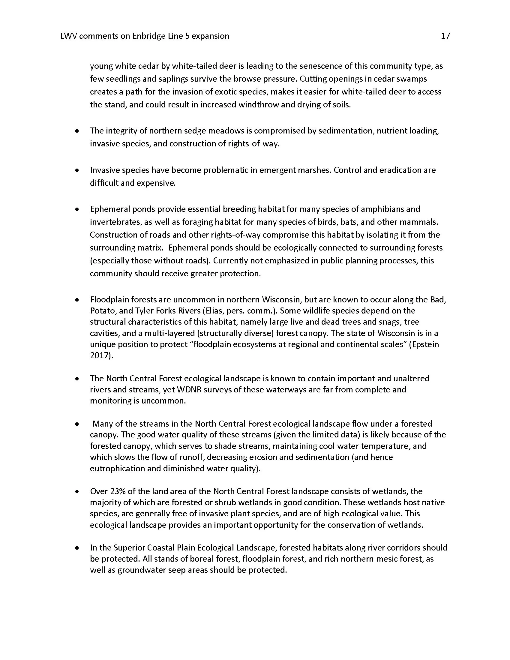 LWVWI Comments to the DNR on the Enbridge Line 5 Environmental Impact Statement and Waterways Permitting Process
